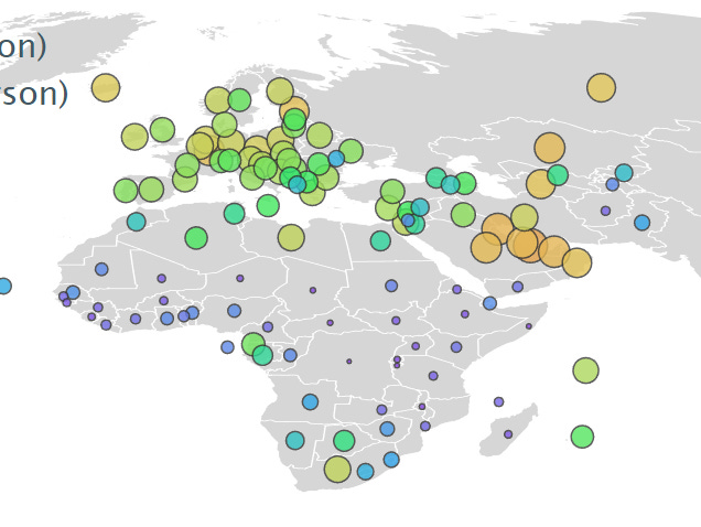 Nothing complex about these charts. you just need to know your geography. The above chart shows carbon emissions per capita in Europe and Africa. the size of the bubble represents the value of carbon emission per capita of each country.